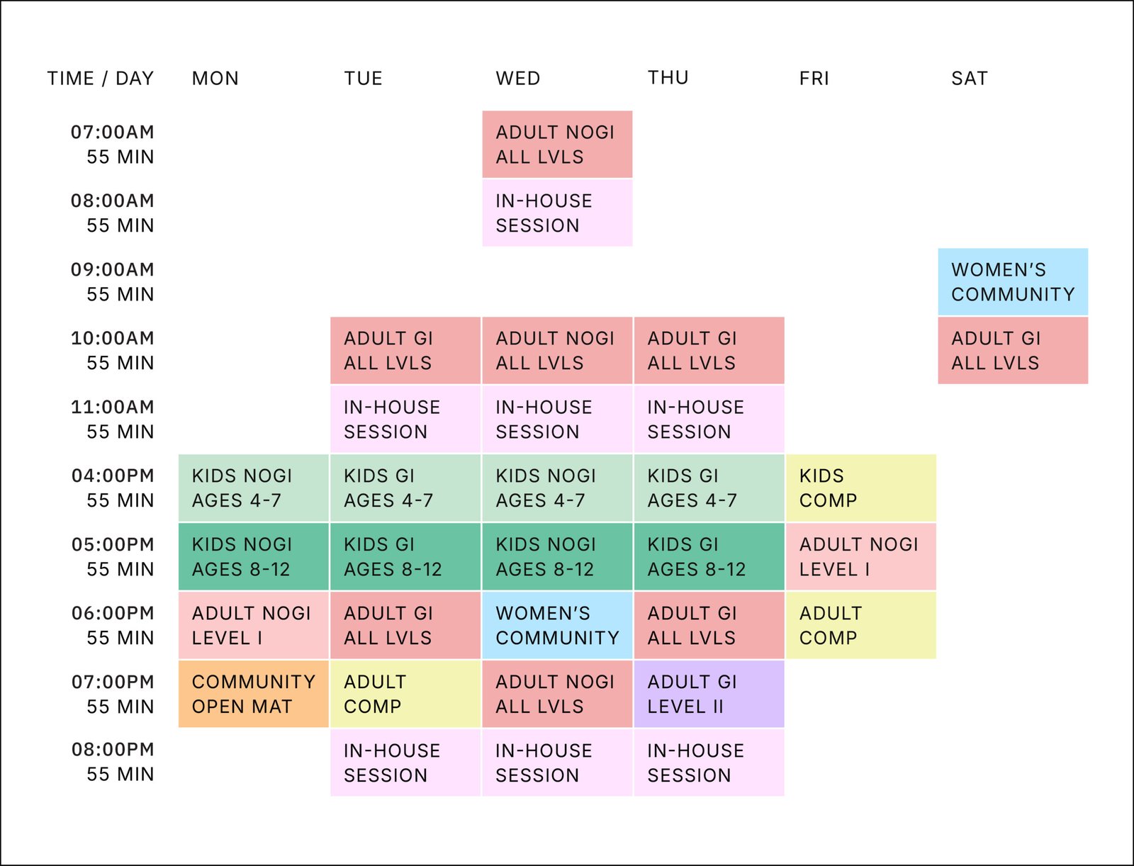 Time open to anyone from the community to train free of charge.